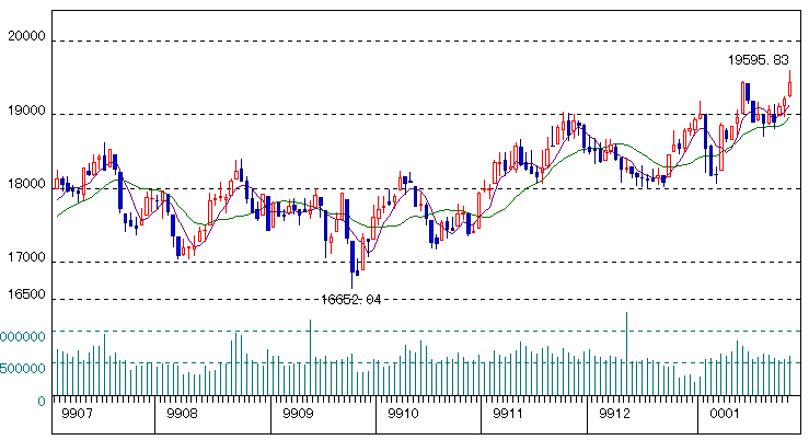 99年1月4日:克美の日経平均予想レンジは1万2500円〜1万7000円